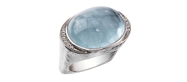 The serene color of aquamarine is said to cool any temper, allowing the wearer to remain calm and levelheaded. Its pale, cool color beautifully complements spring and summer wardrobes. Aquamarine is most often light in tone and ranges from greenish blue to blue-green.